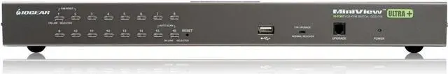 The GCS1716 KVMP is a combo switch allowing access and control of up to 256 computers from a single console (keyboard, mouse, and monitor). As many as 16 additional switches can be cascaded bringing the total number of connected computers to 256 computers that can be controlled from a single keyboard-monitor-mouse console. A custom ASIC (patent pending) provides an auto-sensing function that recognizes the position of each station on the installation, eliminating the need to manually set the position with DIP switches. Additionally, the GCS1716 features high density SPHD 15-pin instead of the usual 25-pin connectors thus allowing for a compact design and installation in a 1U system rack.