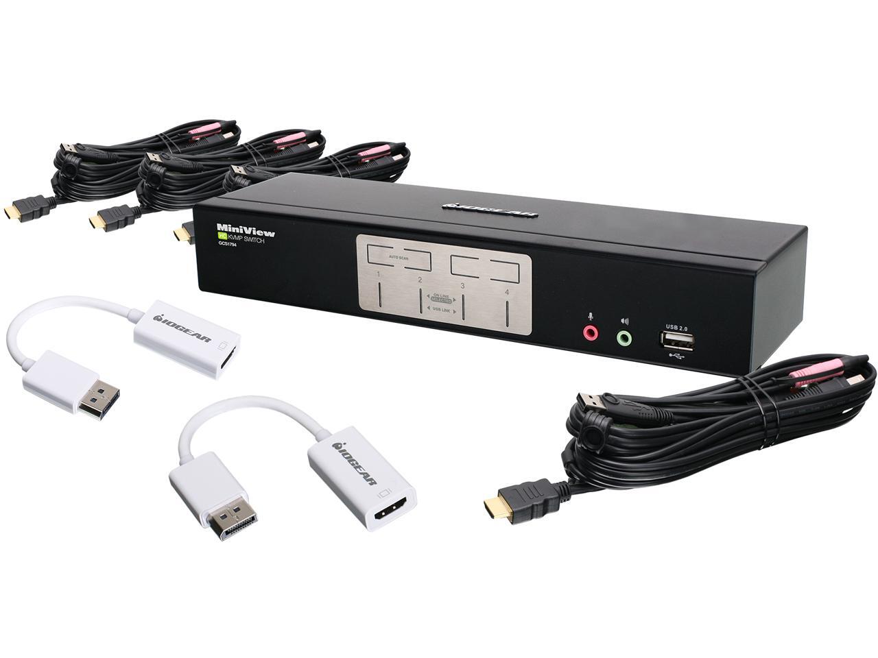 IOGEAR GCS1794DPKIT 4-Port HDMI and DisplayPort KVMP Kit with USB Hub and Audio