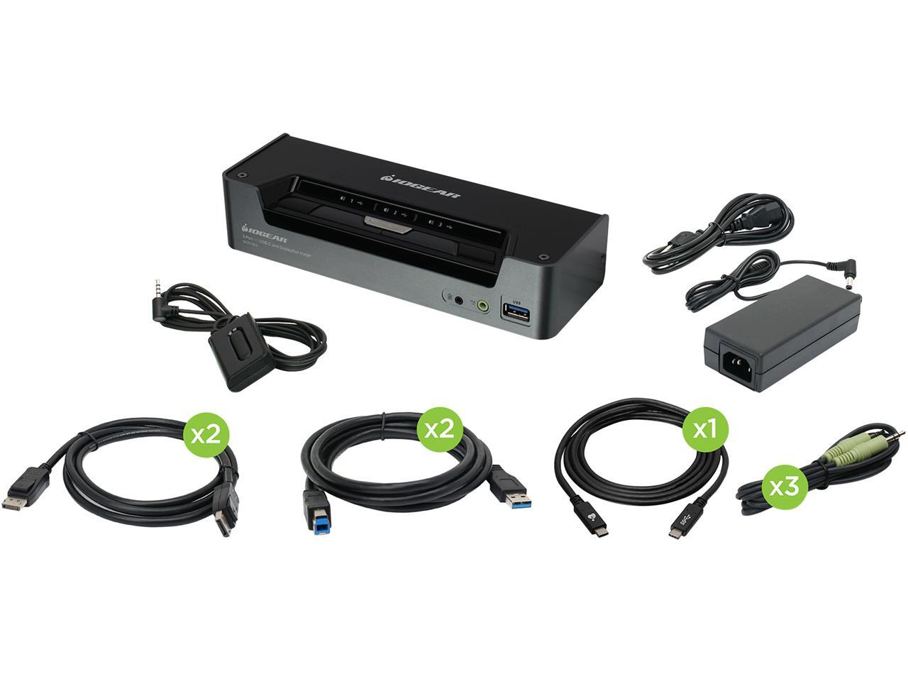 3-Port 4K USB-C and DisplayPort KVMP Switch with Power Delivery