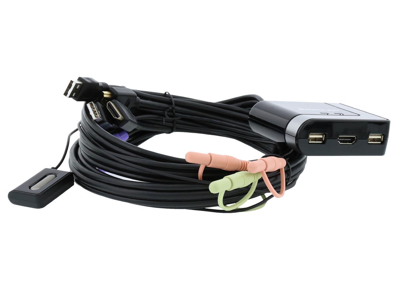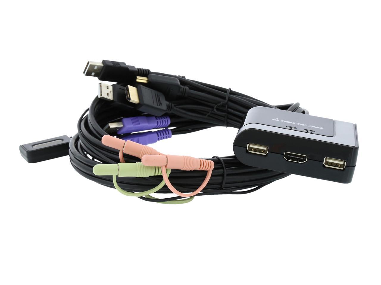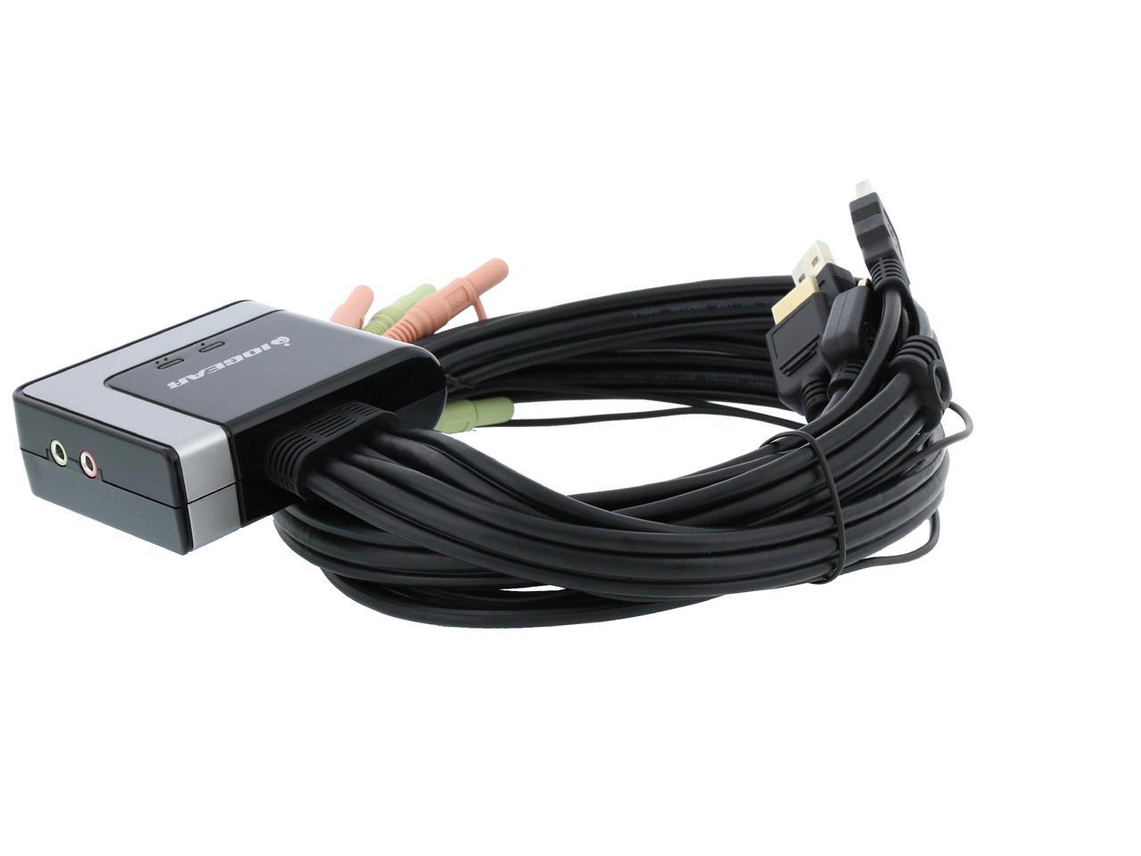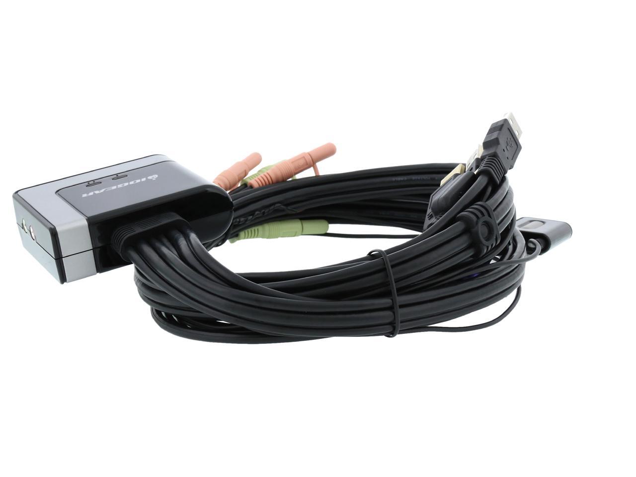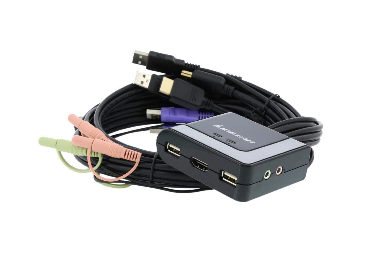 Share a display with HDMI connection, a USB keyboard and mouse, with 2 USB computers Separate the Internet and Intranet with the click of a button Full 1080p and up to 1920 x 1200 @ 60Hz Digital Audio support HDCP Compliant Multi OS platform support Works with game consoles Port switching via remote switch button, mouse or hotkeys Hotkeys allows independent KVM and audio switching between computers Includes 2.1 stereo sound and microphone support USB 2.0 Peripheral Sharing via mouse port. Connect a powered USB Hub to expand your USB connectivity USB mouse and keyboard emulation for error-free boot-up and instantaneous recognition when switching computers Power-On Detection - If one of the computers is powered off, it will automatically switch to the next powered-on computer Re-programmable hotkey activation for keyboards without a scroll lock key Keyboard emulation can be disabled to support gaming keyboard's special keys Mouse emulation can be disabled to support mice with special keys Mac and Sun keyboard support Firmware upgradeable Plug-n-play; no software required Mini DisplayPort to HD Adapters: Converts your Mini DisplayPort to HD so you can connect to a HD projector, TV or monitor. Works with Apple iMac or MacBook Compliant with Mini DisplayPort Specification 1.1a for both 1.62 Gbps and 2.7 Gbps Support full Mini DisplayPort link tracking Supported resolutions: ?Full HD 1080p 1920x1200 Compliant with HDMI up to 2.25Gbps Support interrupt request output for expansion function Supports Deep Sleep Mode (suspend mode) IOGEAR's DynaSync provides the EDID support for Windows 7 Mouse emulation must be disabled for this feature to function correctly