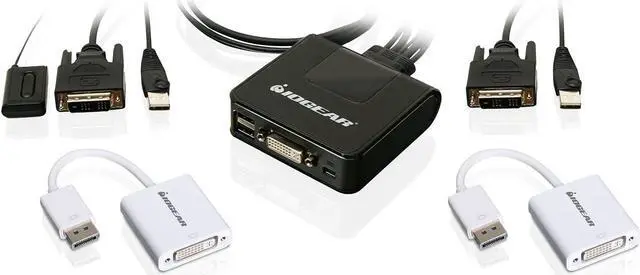 IOGEAR 2-Port USB DVI Cable KVM with DisplayPort Adapters Bundle (GCS922DPKIT)