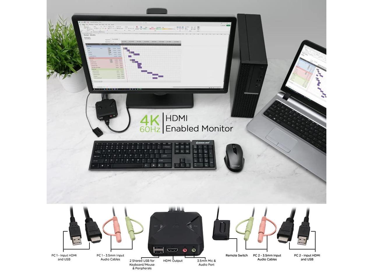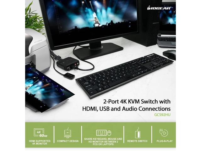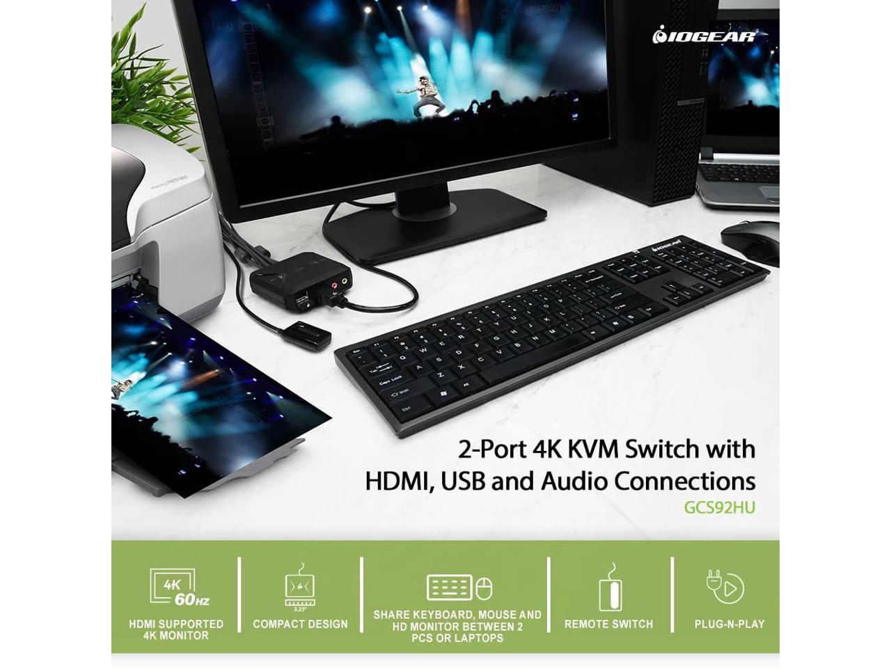 IOGEAR 2-Port 4K KVM Switch with HDMI USB and Audio Connections