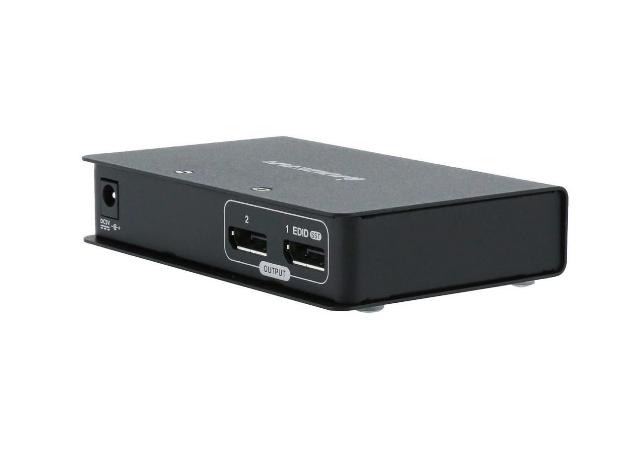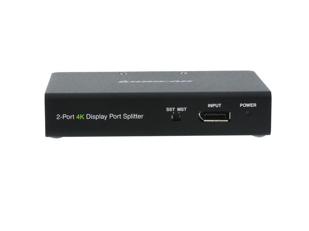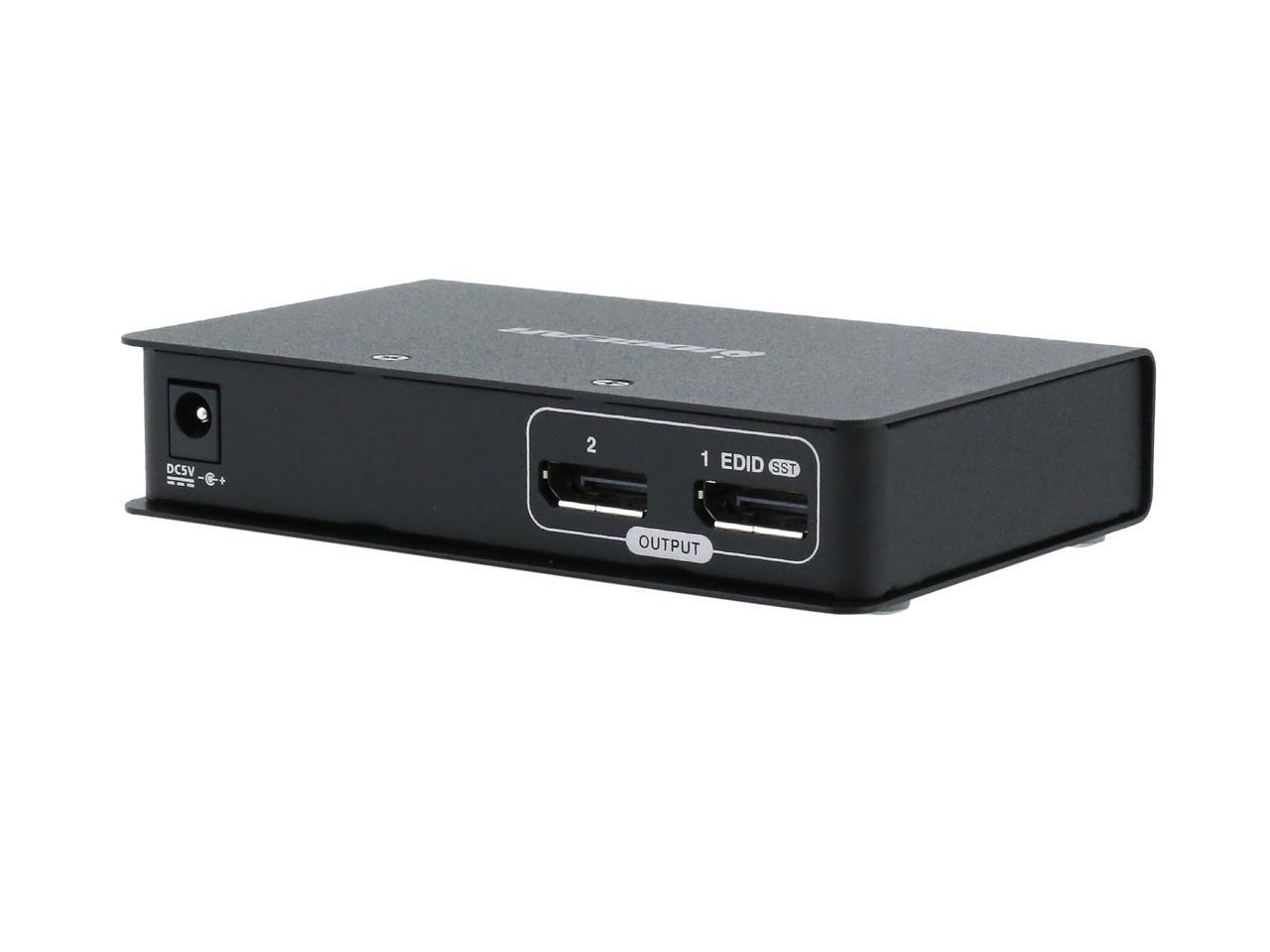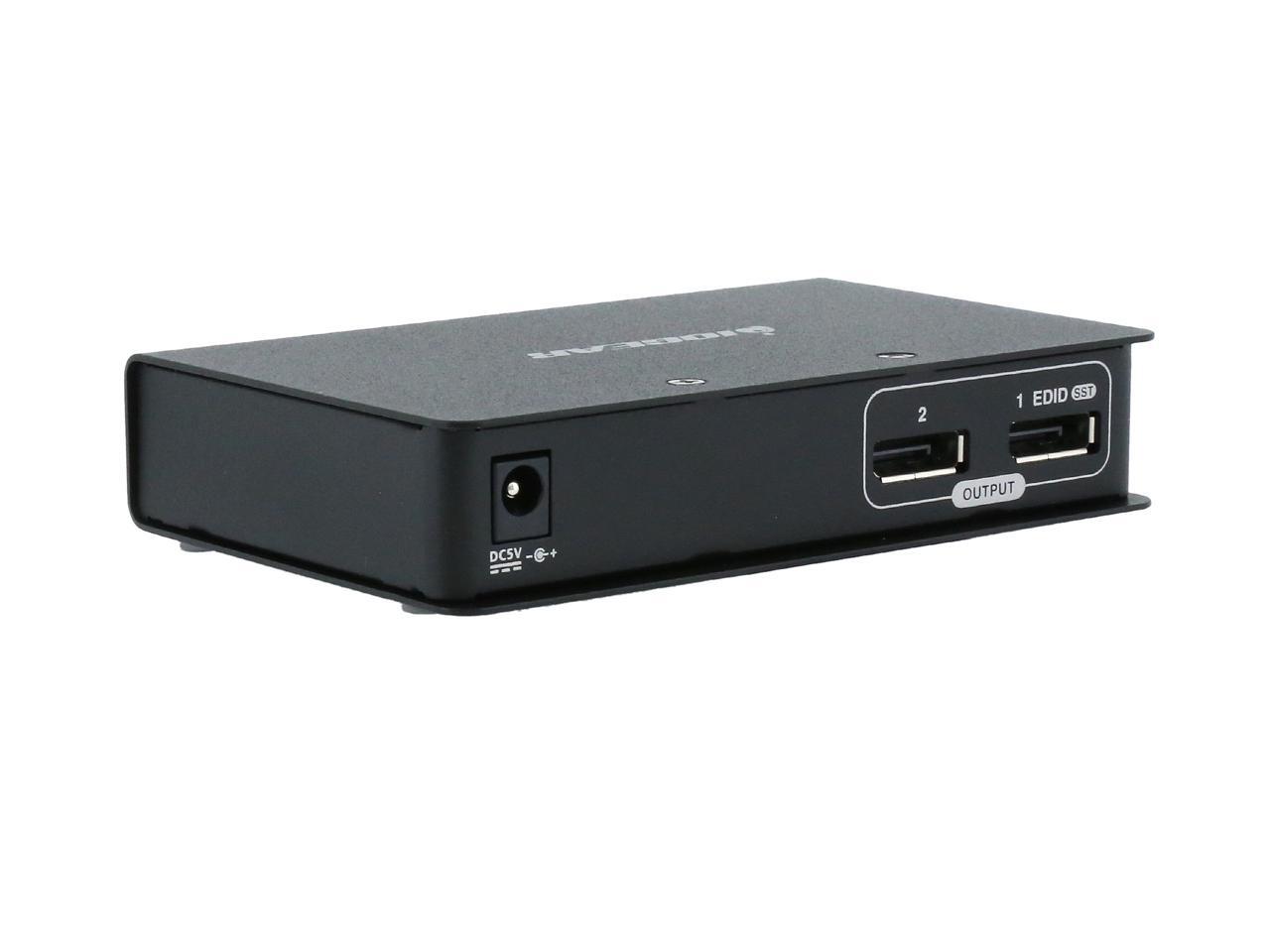 2-Port DisplayPort Splitter and MST Hub Connect two displays from a single DisplayPort 1.2-enabled computer with the IOGEAR 2-Port DisplayPort Splitter/MST Hub. Increase productivity and workflow by expanding the amount of usable screen space on two independent screens for multi-document viewing, media streaming, and content/web browsing, or mirror your computer's display across two monitors to allow remote viewing applications such as monitoring equipment diagnostics or the status of a remote server. 4K Ultra High Definition (DCI) Video Support IOGEAR's 2-Port DisplayPort 1.2 Splitter and MST Hub supports high-resolutions up to 4096 x 2160 @ 60Hz and is ideal for use with applications such as medical imaging, graphic design, gaming, and more. A Broad Range of Uses Add two independent displays to your DisplayPort 1.2-enabled computer with a single DisplayPort video output in a variety of applications. Business - Use one monitor to view your email, web browser or presentation while composing and generating content on the other. Digital Signage - Create a high-resolution panoramic video display to showcase new products and capture the attention of prospective customers. Data Management - Great for laying out multiple spreadsheets to show data more effectively, leading to greater workflow and enhanced productivity in the office or workplace. Digital Arts - Compose, open, and edit various images, videos or audio files in a variety of resolutions and screen orientations. Web Development - Edit source code on one display while previewing work in a browser on the other screen. Package Contents: 2-Port DisplayPort 1.2 Graphics Splitter / Multi-Monitor MST Video Hub 1 x Power Adapter 1 x Quick Start Guide 1 x Warranty Card Material: Metal Product Type: Signal Splitter Product Type: Signal Splitter Input Voltage: 5 V DC Manufacturer Part Number: GDPSP2 Packaged Quantity: 1 Limited Warranty: 3 Year Weight (Approximate): 7.20 oz Length: 3 Manufacturer: IOGEAR, Inc Product Model: GDPSP2 Product Name: 2-Port DisplayPort 1.2 Graphics Splitter / Multi-Monitor MST Video Hub Brand Name: IOGEAR Brand Name: IOGEAR Height: 1 Depth: 4.4 Number of DisplayPort Outputs: 2 Number of DisplayPort Inputs: 1 Environmentally Friendly: Yes Environmental Certification: WEEE Environmental Certification: RoHS Maximum Video Resolution: 4096 x 2160 DisplayPort: Yes Number of DisplayPort Outputs: 2 Number of DisplayPort Inputs: 1