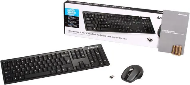 1 x Wireless Keyboard 1 x Wireless Optical Mouse 1 x USB Receiver 1 x AAA Battery for Keyboard 2 x AA Batteries for Mouse 1 x Quick Start Guide 1 x Warranty Card