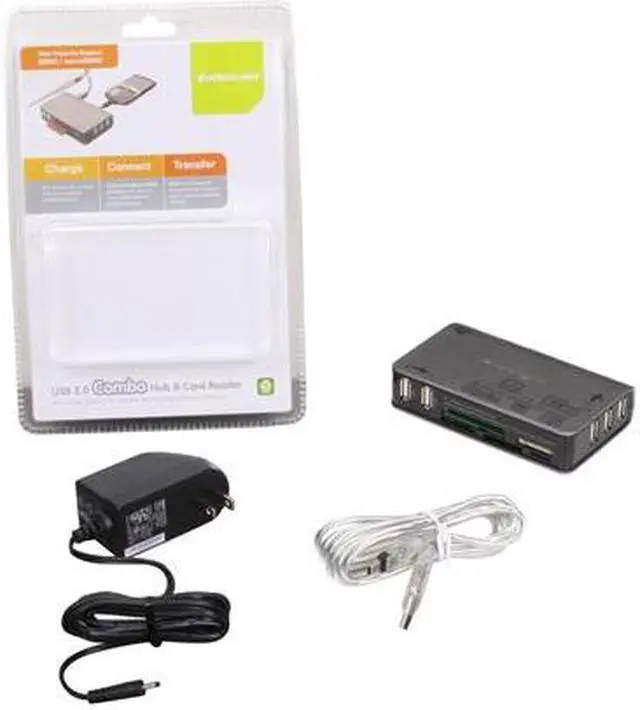 The Iogear GUH286 USB 2.0 Combo Hub & Card Reader bridges the gap between your computer and devices such as digital cameras, digital camcorders, portable MP3 players, as well as peripherals such as scanners, external hard drives and more. Combining five high-speed USB 2.0 ports with a 56-in-1 card reader, this elegant system delivers lightning-fast connectivity as well as file transfer capabilities. Just insert your memory cards and transfer data at 480 Mbps. In addition, with the built-in mini-B USB cable, you can charge and synchronize your mobile phone with your computer more easily than ever.