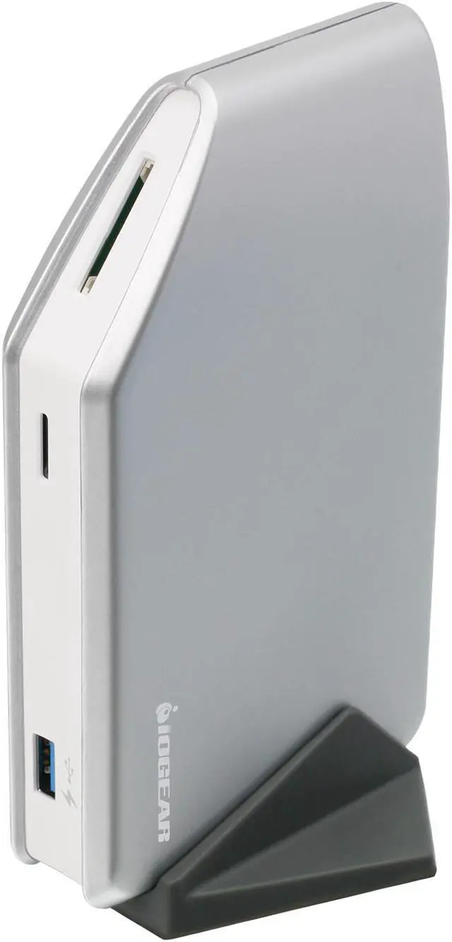 Experience ultra-fast file transfers with the hub's five SuperSpeed USB 3.1 ports. These ports facilitate rapid syncing, saving, and transfer of photos, videos, or documents at speeds reaching up to 10 Gbps via the hub's USB-C and USB-A ports. The USB-C Hub with Card Reader offers flexibility in desktop placement. Use it in an upright position with the included stand to optimize smaller workspaces, or lay it horizontally without the stand to suit your needs. Enjoy complete compatibility with a wide range of devices. This hub seamlessly connects with MacBook series, Chromebook, and Windows-based systems, as well as both USB-C and Thunderbolt 3 computers for instant expandability.