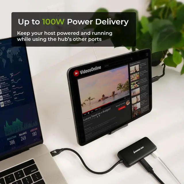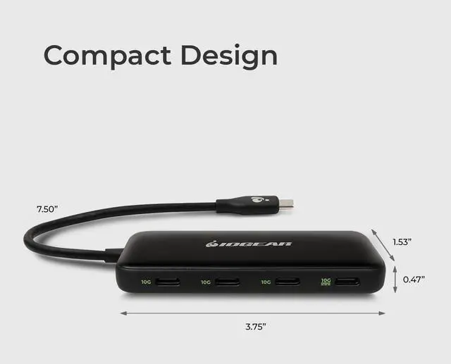 High-Speed Data TransferExperience the efficiency of high-speed data transfer with rates up to 10Gbps. This makes the hub ideal for transferring large files, editing videos, or managing extensive datasets. The IOGEAR GUH3C4C ensures that your data moves quickly and efficiently, enhancing productivity and reducing wait times. Mobile Device CompatibilityThe hub offers seamless compatibility with mobile devices, allowing for quick file sharing and charging. Whether you're transferring photos to your laptop or charging your phone, the IOGEAR GUH3C4C provides a convenient and reliable connection. Power DeliveryKeep your host device powered with up to 100W Power Delivery support, ensuring that your laptop or tablet remains charged while you use the hub's other ports.