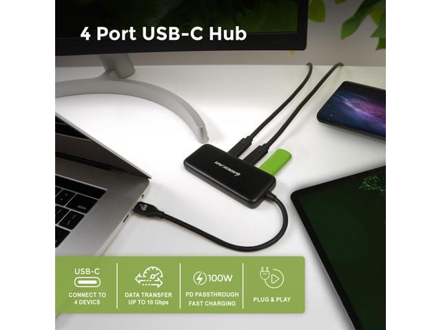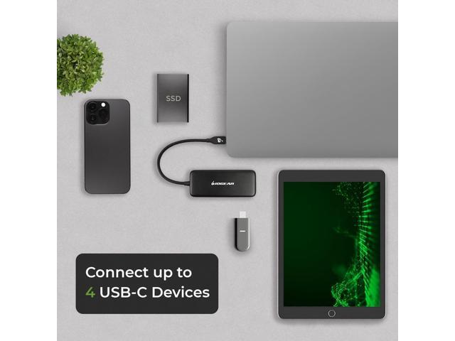 IOGEAR 4 Port USB-C Hub - USB Type C - 1.25 GB/s - Solid State Drive, Hard Drive, Smartphone, Card Reader, Notebook, Tablet - 4 USB Port(s) - PC, Mac