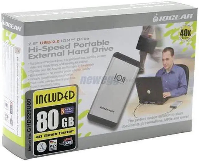 | Package Contents | 80GB External Hard Drive 1 x USB Cable 1 x USB Power Cable Carrying Bag |