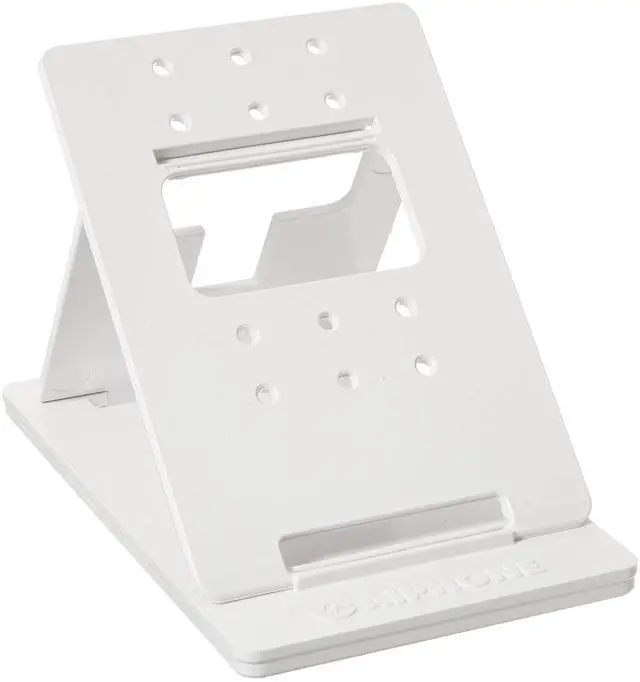The Aiphone MCW-S/A desk mount stand supports an intercom station with monitor from the AX, GT, JF, JM, JO, and KB Series (sold separately) on a flat surface such as a desk or tabletop. The viewing angle can be adjusted to a 45- or 60-degree position and locked in place. The intercom station's mounting bracket attaches to the desk mount stand for a secure hold. The stand dimensions at the 45-degree angle are 5-1/8 x 4-1/2 x 7-7/8 inches (H x W x D), and dimensions at the 60-degree angle are 6 x 4-1/2 x 7-7/8 inches (H x W x D). (H is height, the vertical distance from the lowest to highest point; W is width, the horizontal distance from left to right; D is depth, the horizontal distance from front to back.)