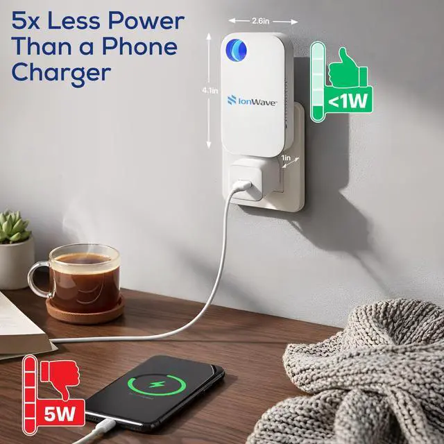 : Our IonWave Pro plug air purifier releases a high concentration of negative ions to remove unwanted particles in the atmosphere.