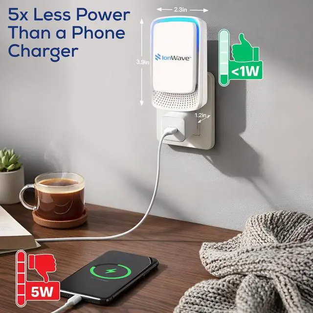 : Naturally remove airborne particles such as dust and pet dander with the IonWave plug in air purifier that releases a high concentration of negative ions that bind to airborne particles to remove them.