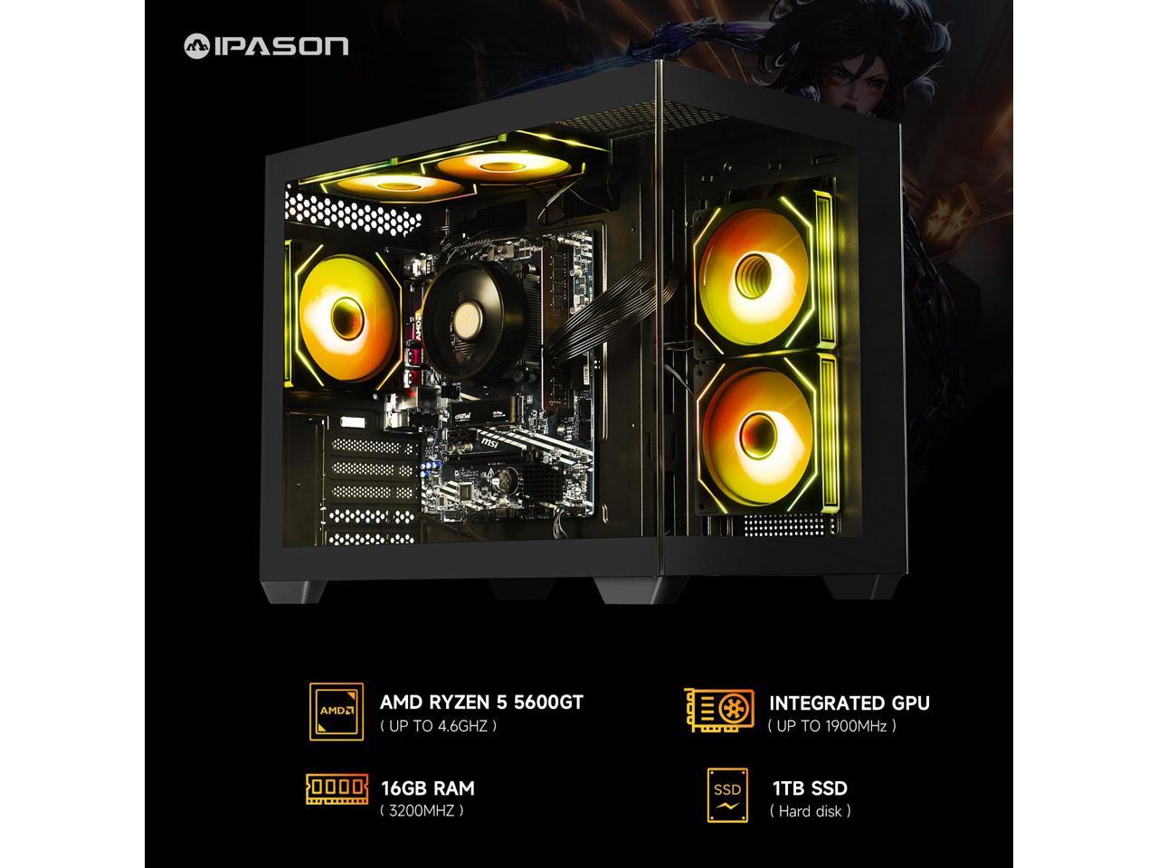 IPASON - Gaming desktop - AMD Ryzen 5 5600GT 6 core up to 4.6GHz - 16GB DDR4 3200MHz - 1TB M.2 NVMe - 550W PSU - Windows 11 home - WIFI - Gaming PC