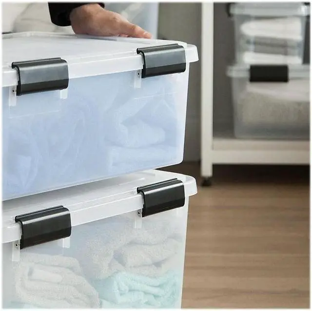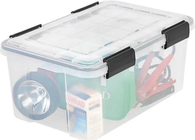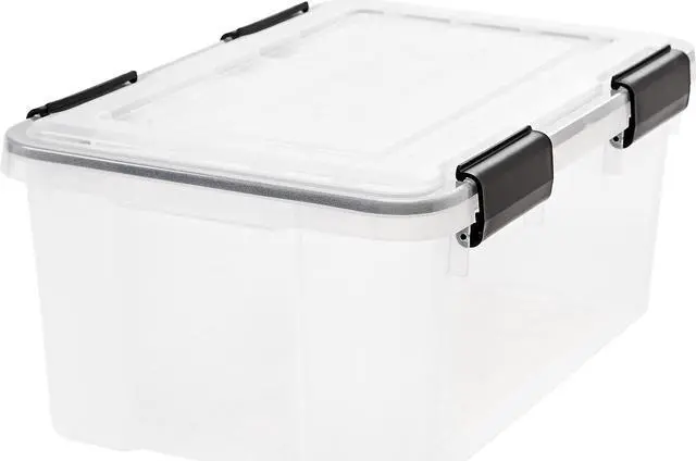 Maintain an organized storage system with this 19-quart storage box. The clear material allows for easy viewing of contents while the durable plastic construction keeps contents protected from moisture and other damage. These Iris WEATHERTIGHT storage boxes feature a latching lid, keeping contents secure in storage.