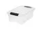 Modular design makes it easier to stack and organize space efficiently Built-in pull handle assists in pulling boxes down from shelving.