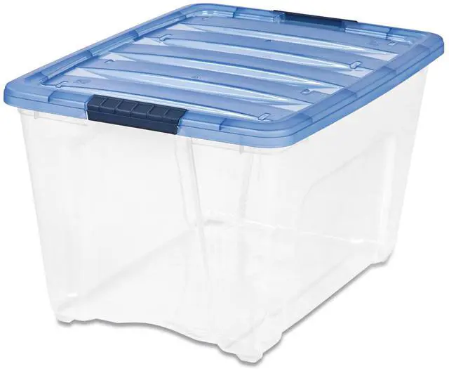 Iris Stack and Pull Latching Flat Lid Storage Box 13.5gal Clear/Translucent Blue