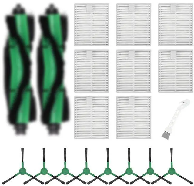 Valuable Package: Includes 2 Multi-Surface Rubber Brushes, 8 Pack Filters, 8 Pack Side Brushes, 1 Pack Cleaning Tools.