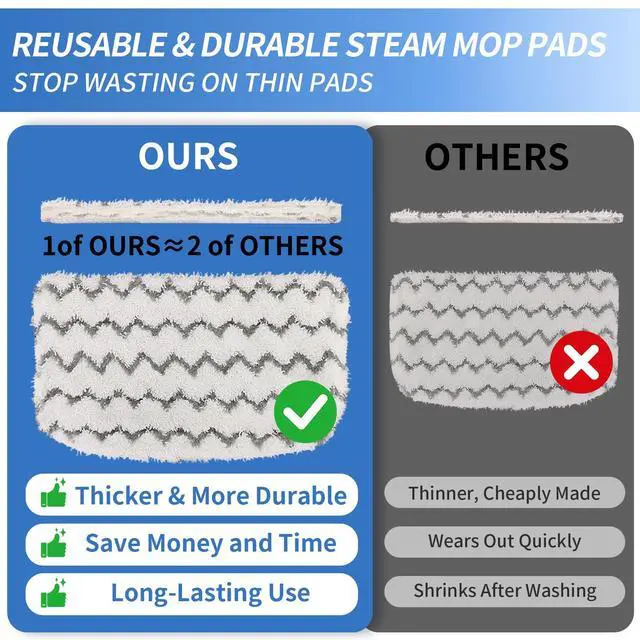 TIPS: Our steam mop replacement pads are vacuum packed for easier shipping. The packaging may slightly affect the shape of the steam mop pads, but it does not impact their quality or performance. Thank you for your understanding!