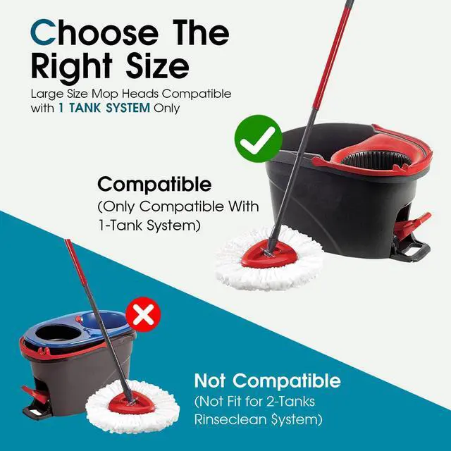 The Package includes mop heads replacements,Which is specifically designed to be 100% compatible with the Oceda EasyWring for Spin Mop system and work well as original.BE AWARE: The mop head replacement is compatible with 1-chamber mop system ONLY, NOT for dual-chamber mop bucket