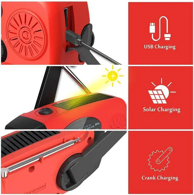 Add Charging indicator to know charging level anytime, 4 lights mean 25% 50% 75% 100% of power. A must for emergency, Take this AM/FM/NOAA portable emergency weather radio with you anytime.