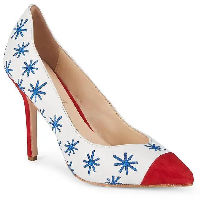 Isa Tapia Estrella Asterisk Embroidered Suede White Trim Leather Pumps - Size 40
