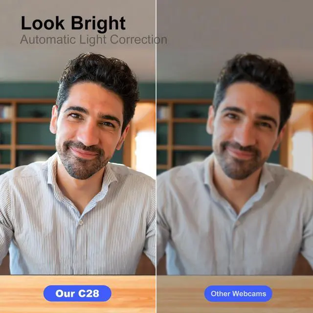 Automatic low-light correction technology C28 web camera also has low-light boost, color boost and adjust exposure so you look your best, even in dim and harsh lighting