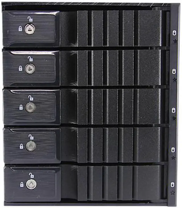 | Features | BPN-SEA350HD is iStarUSA's third generation tray-less hot-swap hard drive cage. It features the latest transfer rate technology of 12Gb/s and is RAID capable. It also comes with adjustable fans speed and ultra-quiet cooling fans. The LED Display lights features the new blue light by popular demand. Heat dissipation is enhanced by the full aluminum construction and a 80mm fan. SATA power connector increases compatibility with most power supplies. The metal key locks help secure your hard drives and prevent unauthorized access. Converting three standard 5.25" drive bays into five usable hard drive slots, it is economically designed to maximize your investment. |