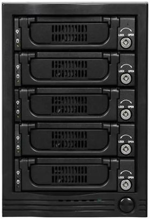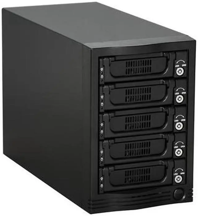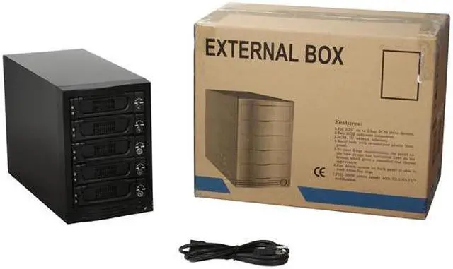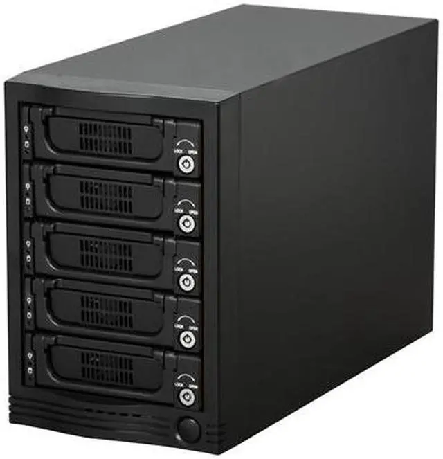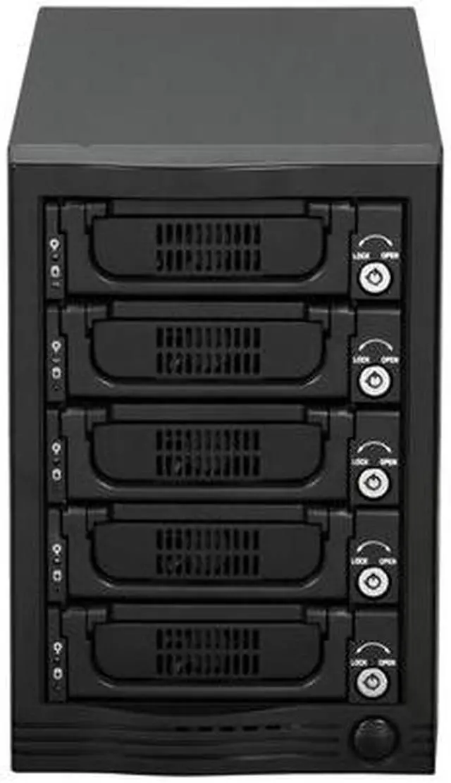 | Features | Supports SATA I/II (1.5/3 Gbps) eSATA Port Multiplier Interface for Easy Connection 80mm Cooling Fans for Ventilation Individual Lock of each HDD Tray for Physical Security LED Indicators for Power and Activity on Each HDD Tray |