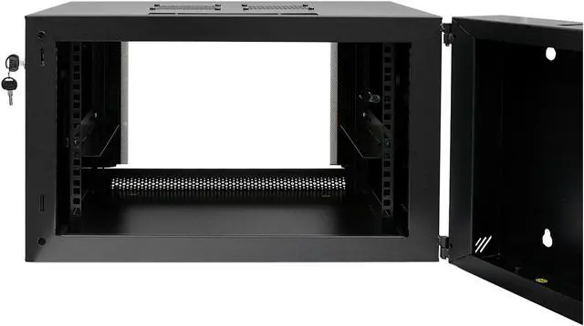 | Features | Sturdy and Rugged Welded Frame Structure Excellent Air Ventilation Design with Optional Dual AC Cooling Fans Three Ways, Top, Bottom, and Rear Cabling Tunnels Swing-out Wall-mounted Design Enforced Strengthen Glass Front Door with Security Key Lock Removable Side Panels with Easy Handy Latches SPCC High-Quality Cold Roll Steel Comes with M6 Mounting Screws and Cage Nuts |