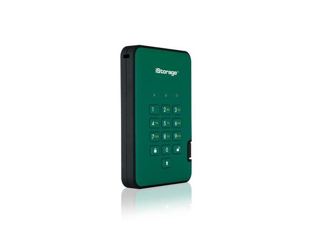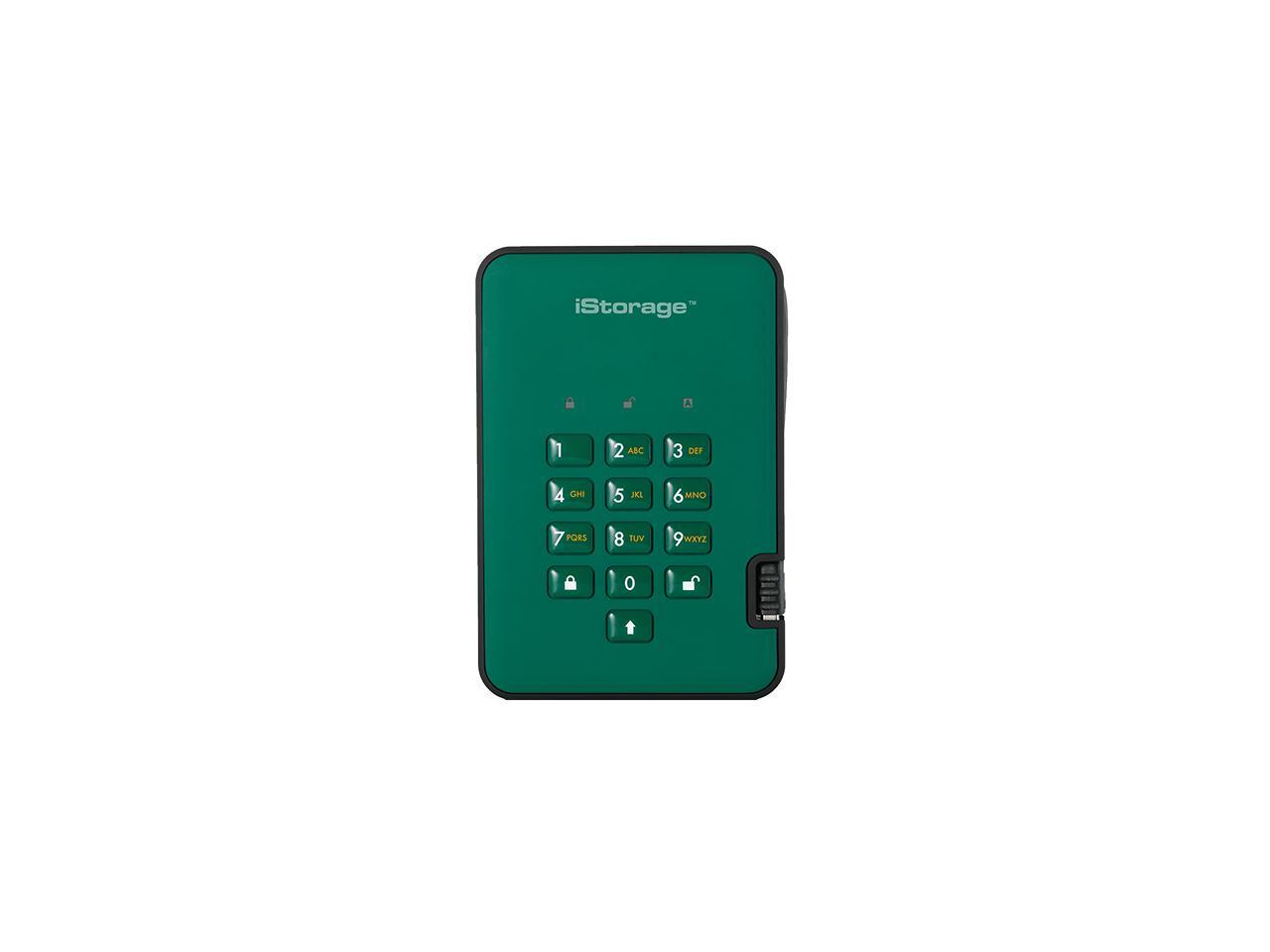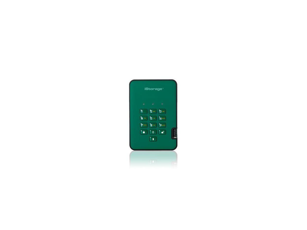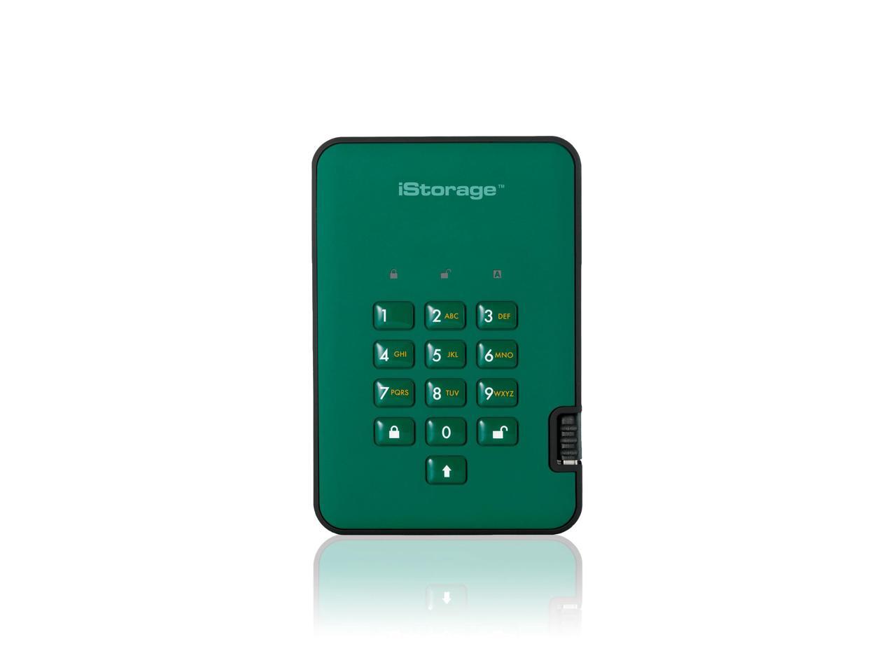 iStorage diskAshur2 HDD 1TB Green - Secure portable hard drive - Password protected, dust and water resistant, portable, military grade hardware encryption USB 3.1 IS-DA2-256-1000-GN