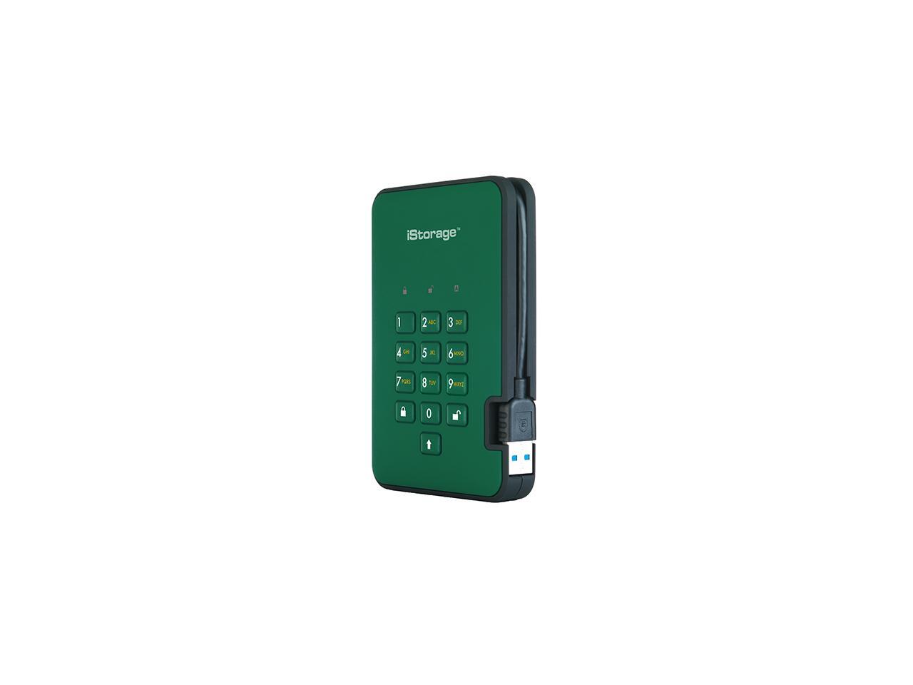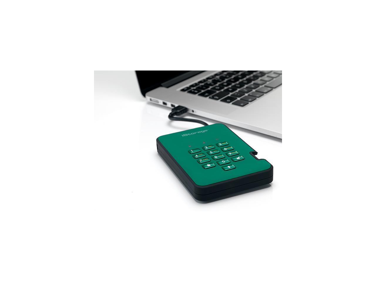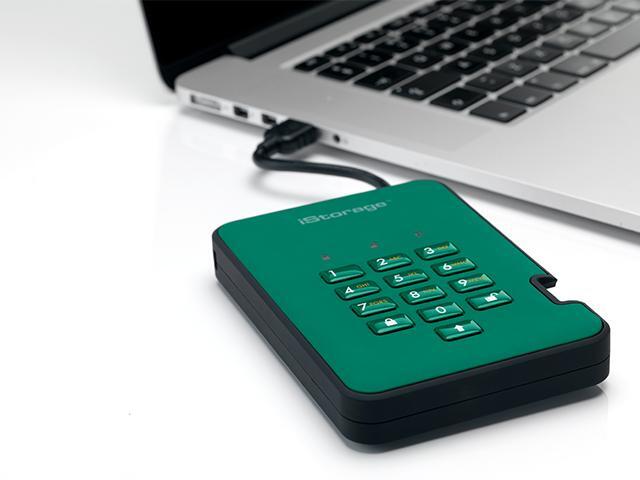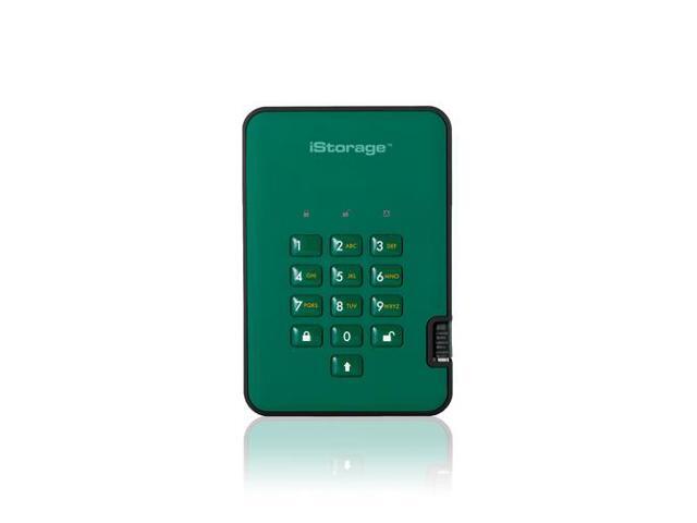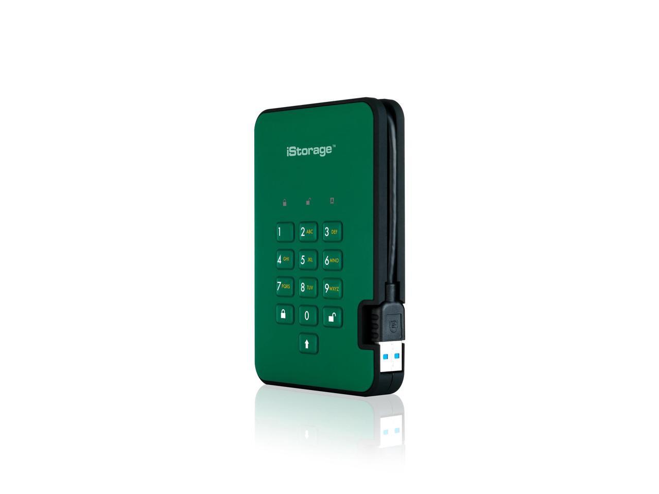 iStorage diskAshur2 HDD 1TB Green - Secure portable hard drive - Password protected, dust and water resistant, portable, military grade hardware encryption USB 3.1 IS-DA2-256-1000-GN