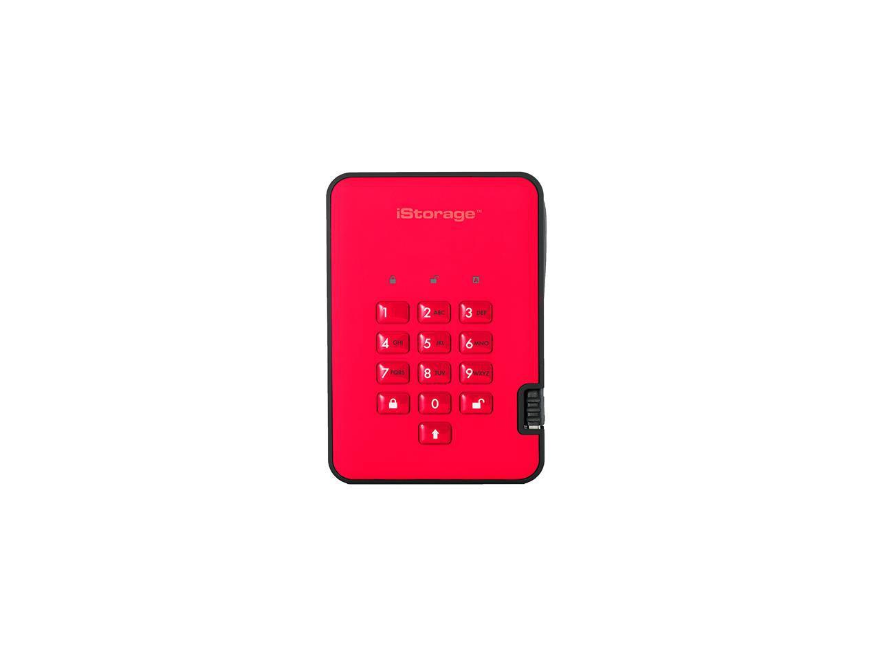 iStorage diskAshur2 HDD 1TB Red - Secure portable hard drive - Password protected, dust and water resistant, portable, military grade hardware encryption USB 3.1 IS-DA2-256-1000-R