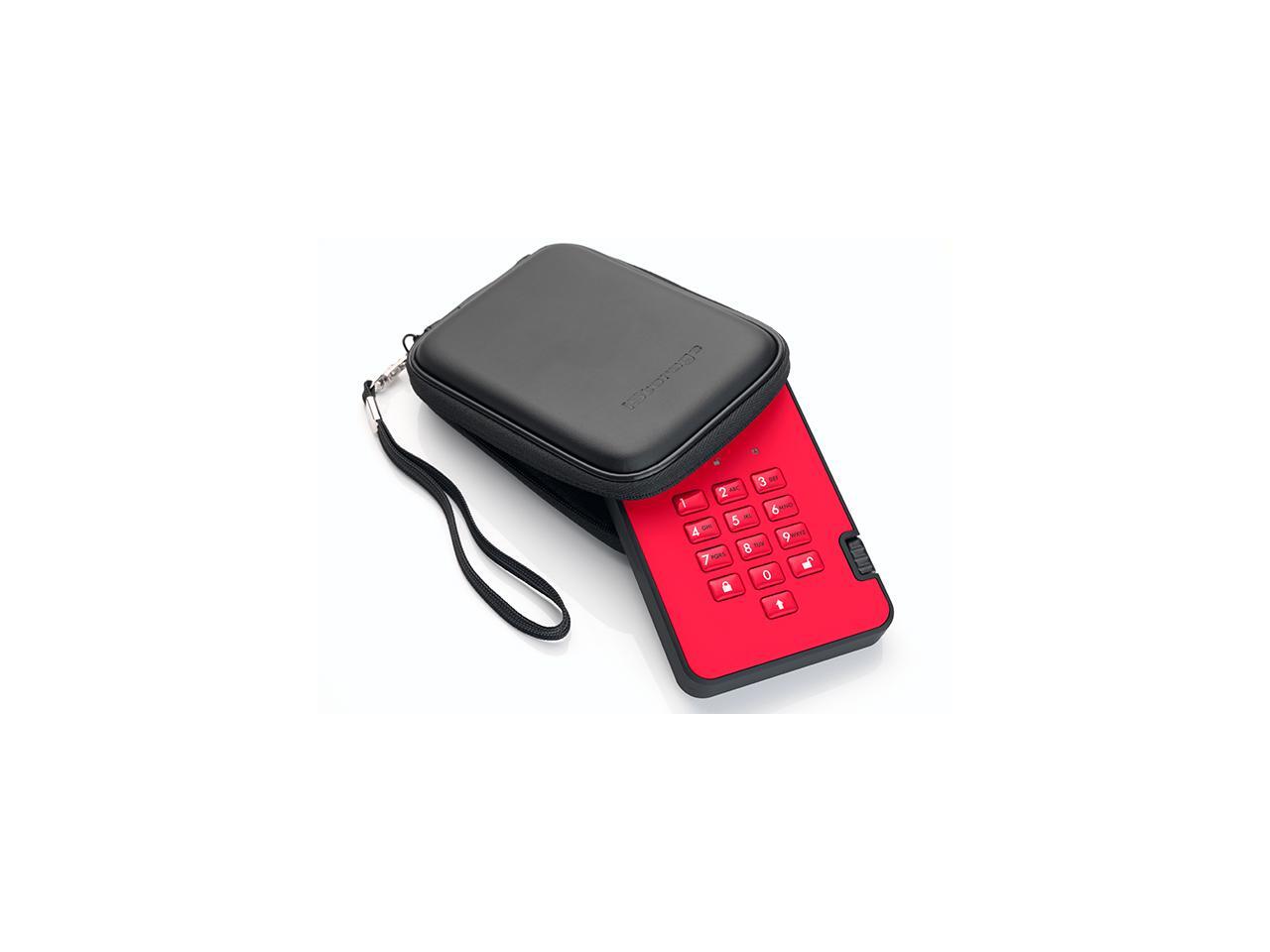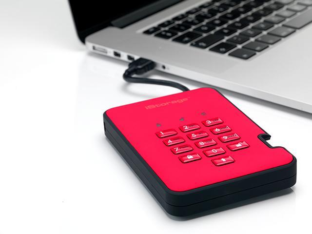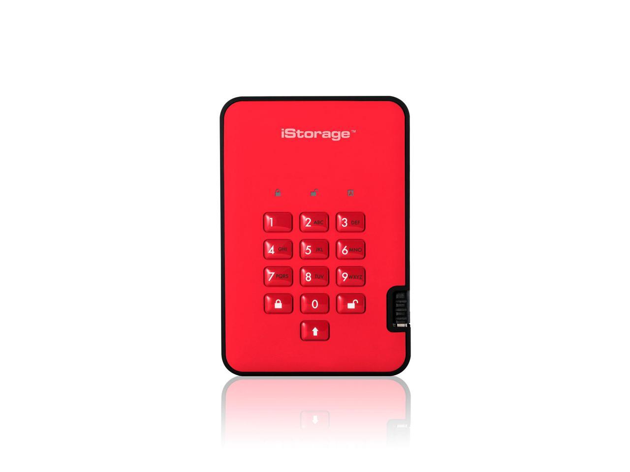 iStorage diskAshur2 HDD 500GB Red - Secure portable hard drive - Password protected, dust and water resistant, portable, military grade hardware encryption USB 3.1 IS-DA2-256-500-R