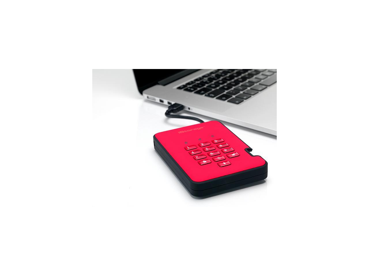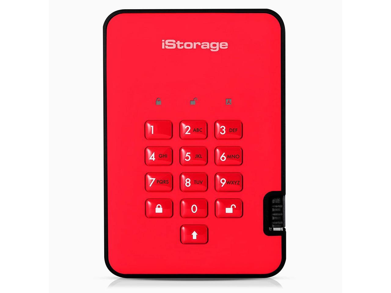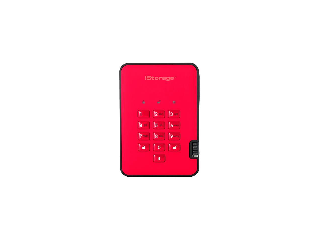 iStorage diskAshur2 HDD 5TB Red - Secure portable hard drive - Password protected, dust and water resistant, portable, military grade hardware encryption USB 3.1 IS-DA2-256-5000-R