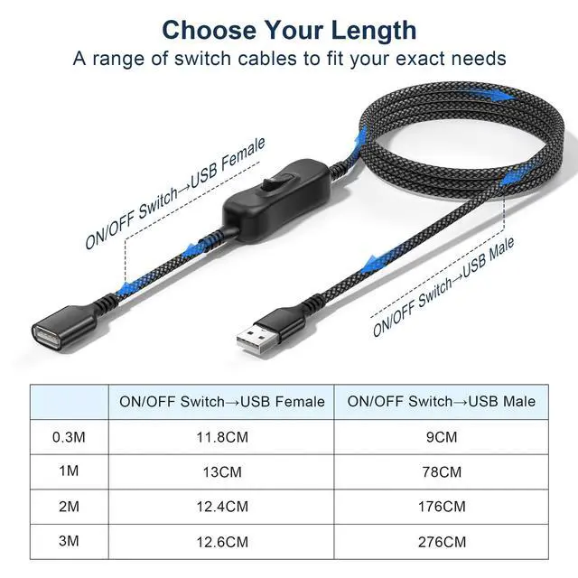 - USB on/off cable with switch.