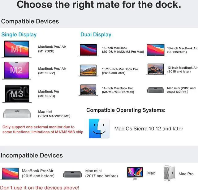 4/ Universal Compatibility: Designed to be universally compatible, this docking station supports a wide range of laptops, including Dell, HP, Lenovo, and MacBook models, ensuring hassle-free connectivity across different devices.