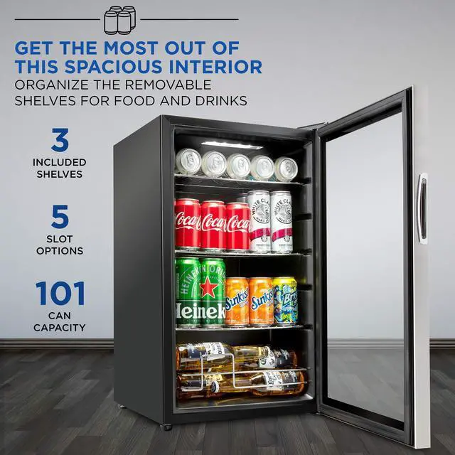 This freestanding unit sets up quickly and easily with no mount or sealant required. Adjustable shelving fits various beverage sizes, so you can stock your way.