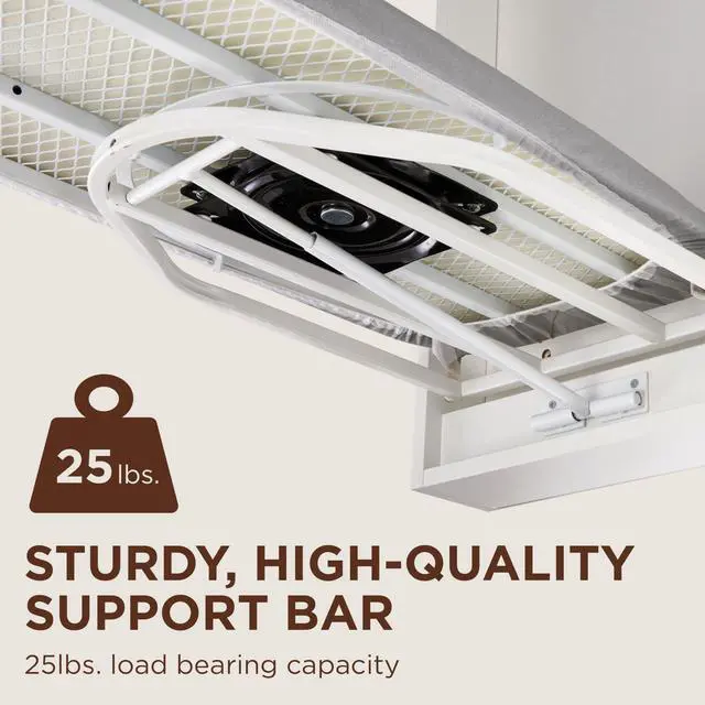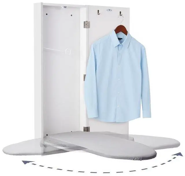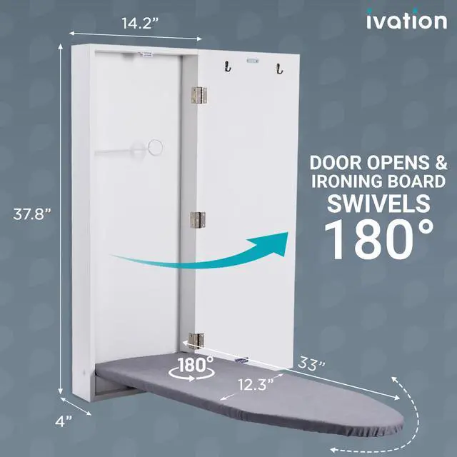 Make presentation your forte! Never enter a business meeting or formal gathering with a wrinkled shirt again! Save room and save face with this functional, fashionable, Mounted, Swivel Ironing Board from Ivation. Featuring a high-quality wall-mount laminate cabinet, 180 Degree Rotating full-size ironing board, and built-in garment hooks, this simple piece of furniture easily transforms into an all-inclusive station. Whether youre trying to fit function into a tight space or just looking to give a mundane task some style, our intuitive design helps you get your laundry done without jumping through hoops. Simply, install the cabinet in your preferred location, grab your favorite iron or garment steamer, and shape your outfit into a wrinkle-free ensemble you can be proud of! When all your fabric woes are smoothed out, the convenient door hooks provide a safe space to temporarily hang your clothes for storage or cooling until they are ready to be worn. If youre looking to present your best self, dont settle for subpar toolsadd an Ivation Mounted Swivel Ironing Board to your card today! How to Enjoy: Install wall-mounted cabinet according to the User Guide Instructions, Open cabinet and fold down ironing board. Swivel in any direction that suits your space, Plug in your favorite iron or garment steamer into a nearby outlet and let it heat up. Iron or steam your garment as desired, Place your garment on a hanger and hang on the clothing hook to set.