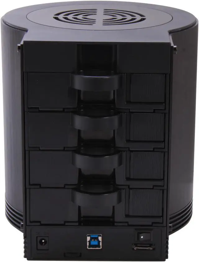 | Features | Main Chipset: RAID JMB391, USB 3.0 JMS539 USB connectivity: Operates at Super(5Gbps) or High (480Mbps) or Full (12Mbps) speeds SATA I/II specification max 3Gbps (by USB connection) SATA I/II specification max 3Gbps(by eSATA connection) SATA to USB 3.0, backward compatible to USB2.0 and USB 1.1 Supports Port Multiplier function Port multiplier to enhance one e-SATA connector, chain 4 SATA hard drives Cooling feature: Aluminum case and cooling fan Fan speed tunable with a rotational switch |