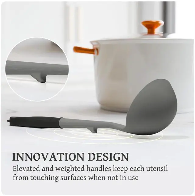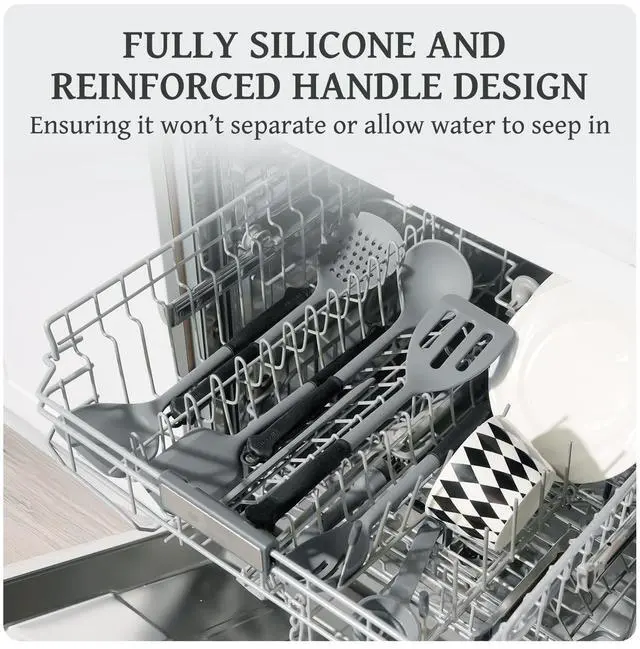 The main utensils have silicone handles for a sturdy, heat-resistant grip that ensures comfort. Their vibrant color block design adds a splash of color to your kitchen, making cooking more enjoyable.