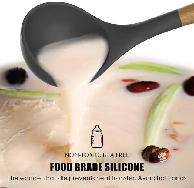 Wooden handle silicone kitchen utensils are soft to protect the cookware surface from scratching, while also keeping its shape without warping. They provide a refined touch to non-stick pans and extend their service life