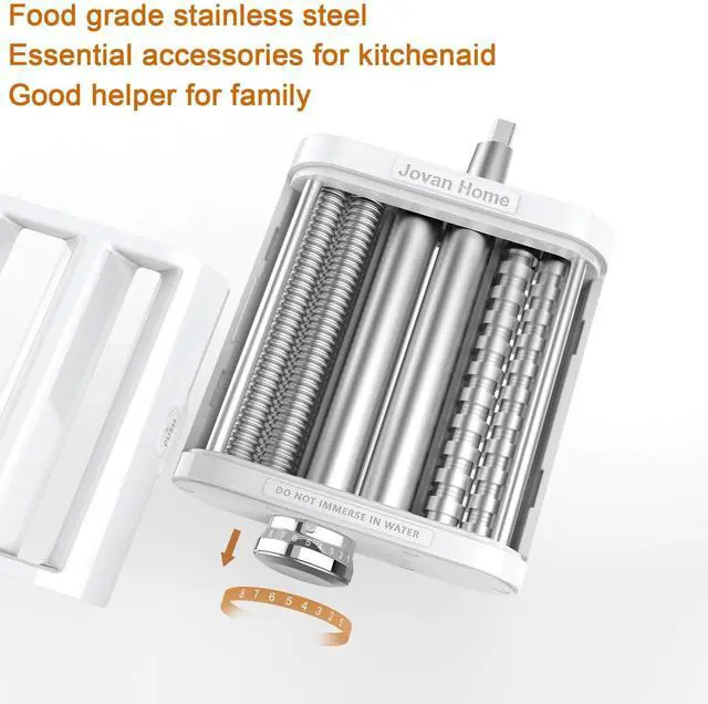 Pasta Roller can make a maximum of 5.5 inches of dough thickness from 0.5mm-2mm can be adjusted by yourself. The Pasta Maker attachment blade set works at the same time achieve Rolls 5.5-inch sheets of pasta with 8 thickness settings to adjust to your desired sheet thickness.