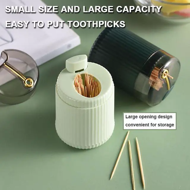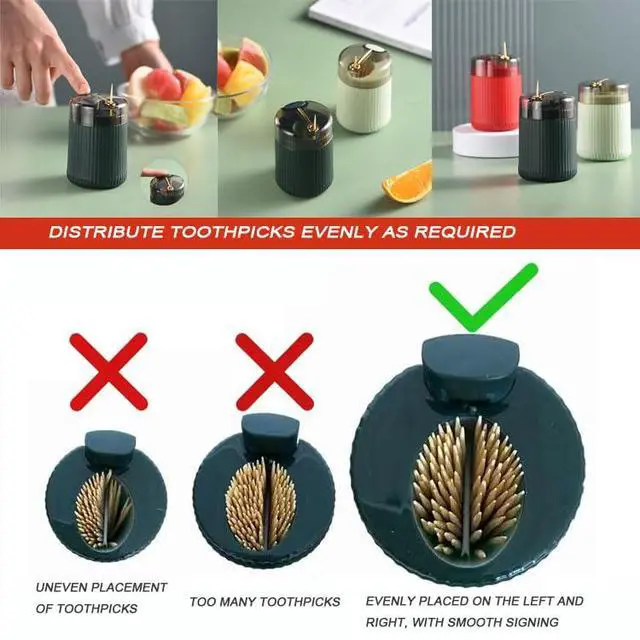 Effortless Toothpick Allocation --- Say goodbye to the hassle of manually picking toothpicks! Our pop-up automatic toothpick dispenser makes it easy and convenient to access toothpicks. Simply load the dispenser, press the top, and a toothpick pops up instantly.