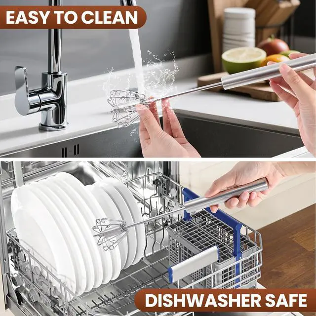 Simply push the whisk in hot soapy water to wipe away any food residue, or toss it in the top rack of your dishwasher for a quick, hassle-free clean!