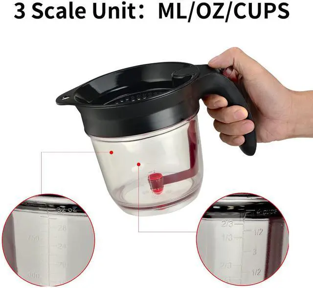 Fat separator cup has a large capacity of 4 cups. You can control the amount you need through the easy-to-read scale, which can reduce unnecessary waste.