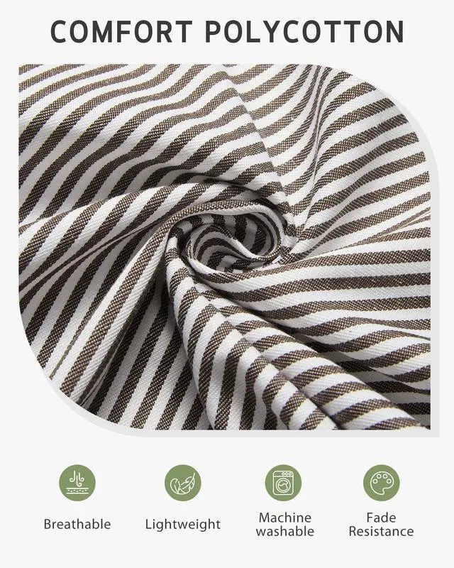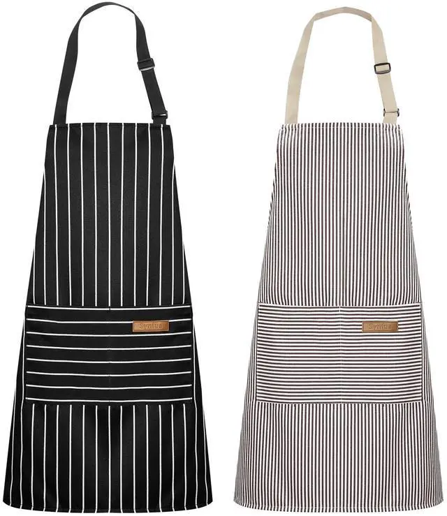 Syntus 2-pack polycotton apron set is a perfect blend of style, function, and durability. This set includes two distinct striped designs. Crafted from a premium 65% polyester / 35% cotton blend, these aprons are lightweight yet sturdy, offering wrinkle resistance, breathable comfort, and easy maintenance. Each apron features two large front pockets for storing tools or personal items, fully adjustable ties for a custom fit, and reinforced stitching for long-lasting durability.