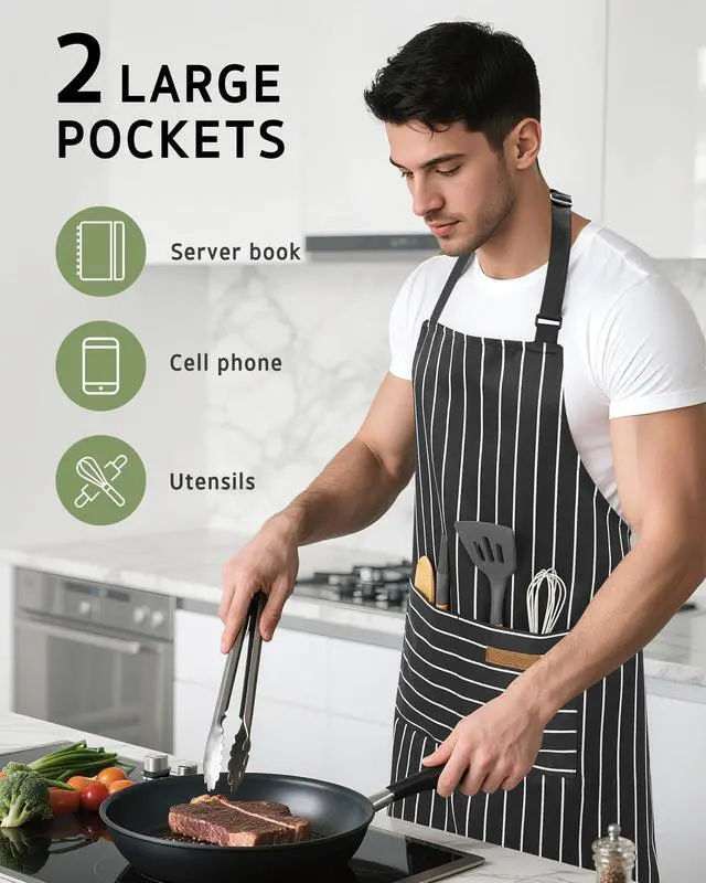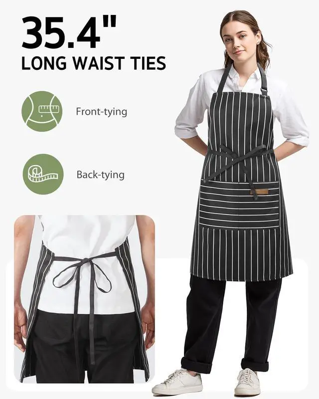Aprons are lightweight yet sturdy, offering wrinkle resistance, breathable comfort, and easy maintenance.