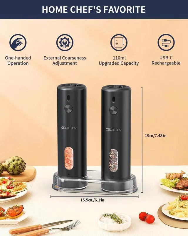 HYGIENE MEETS CONVENIENCE - Say farewell to messy, internal adjustments and hello to a cleaner, more hygienic way to tailor your grind. CIRCLE JOY electric pepper grinder boasts an innovative external coarseness adjustment mechanism, allowing you to easily dial in your desired texture without ever having to touch the peppercorns. This keeps your hands clean while in use, making it a great choice for health-conscious cooks
