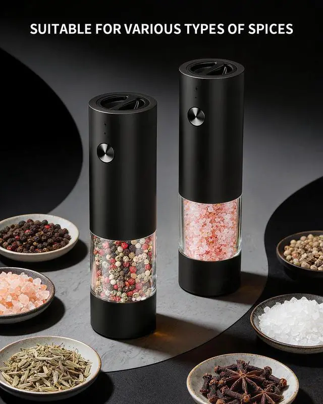 LED Light & Modern Kitchen EssentialBright LED light illuminates your food while grinding, helping you control seasoning accurately. This sleek electric salt and pepper mill set adds both style and function to any modern kitchen or dining table