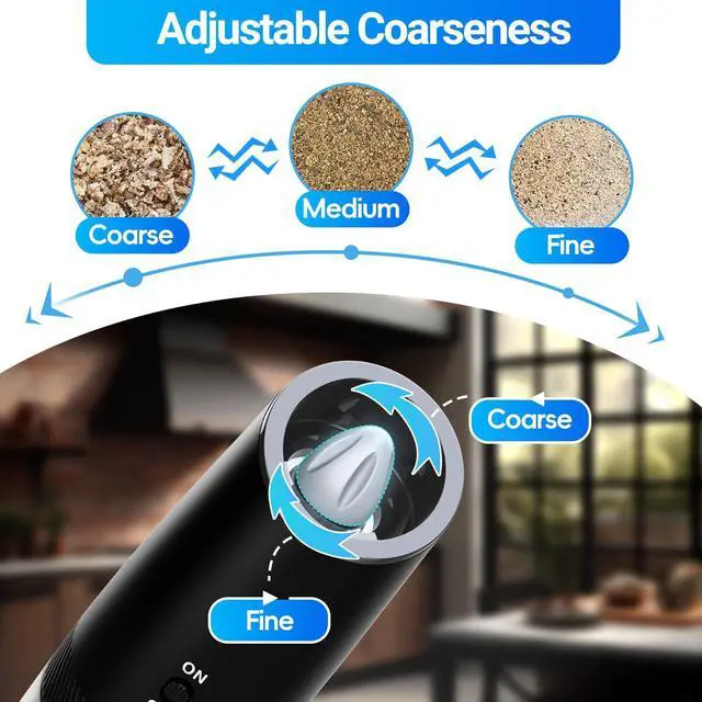 [Adjustable Coarseness for Personalized Flavors] Make spices just the right size with the salt & pepper grinders easy-to-use adjustable coarseness setting (counterclockwise to fine, clockwise to coarse). Simply twist the grinder's tip to achieve your desired texture, from fine powders that delicately season salads to coarse grains perfect for steaks and roasts. Embrace the versatility to elevate every dish with just the right touch